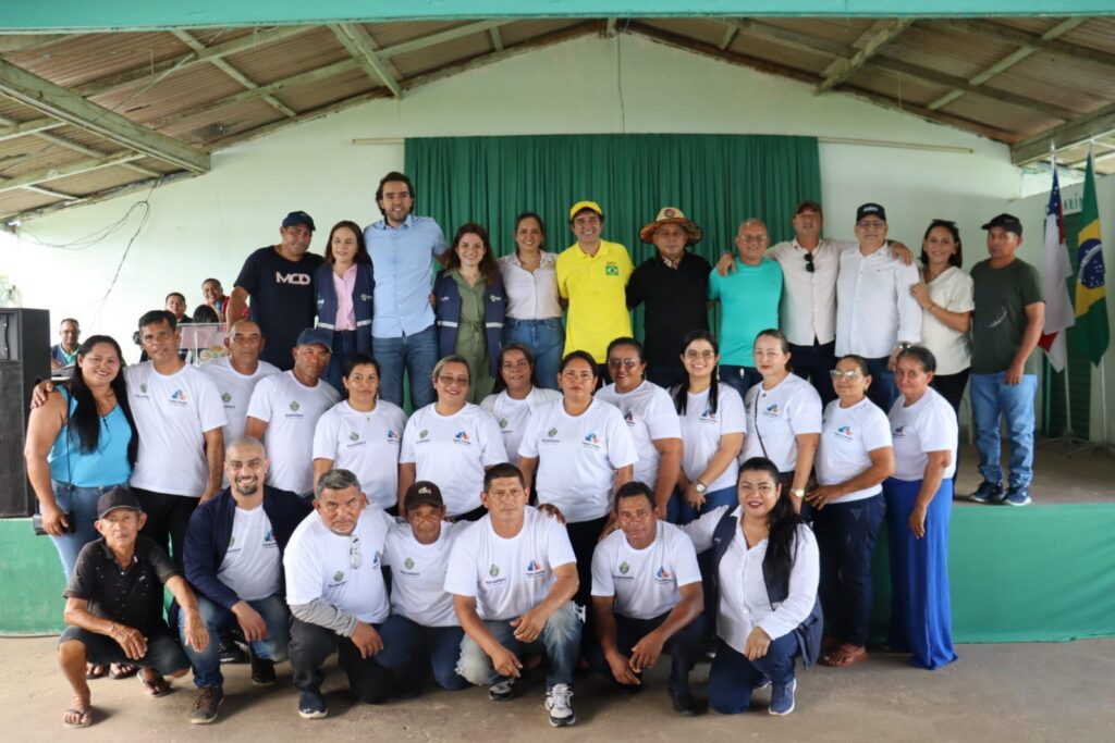 Prefeito Mário Abrahim, Deputado Estadual Thiago Abrahim com profissionais da saúde que atuam no Rio Arari, zona rural de Itacoatiara