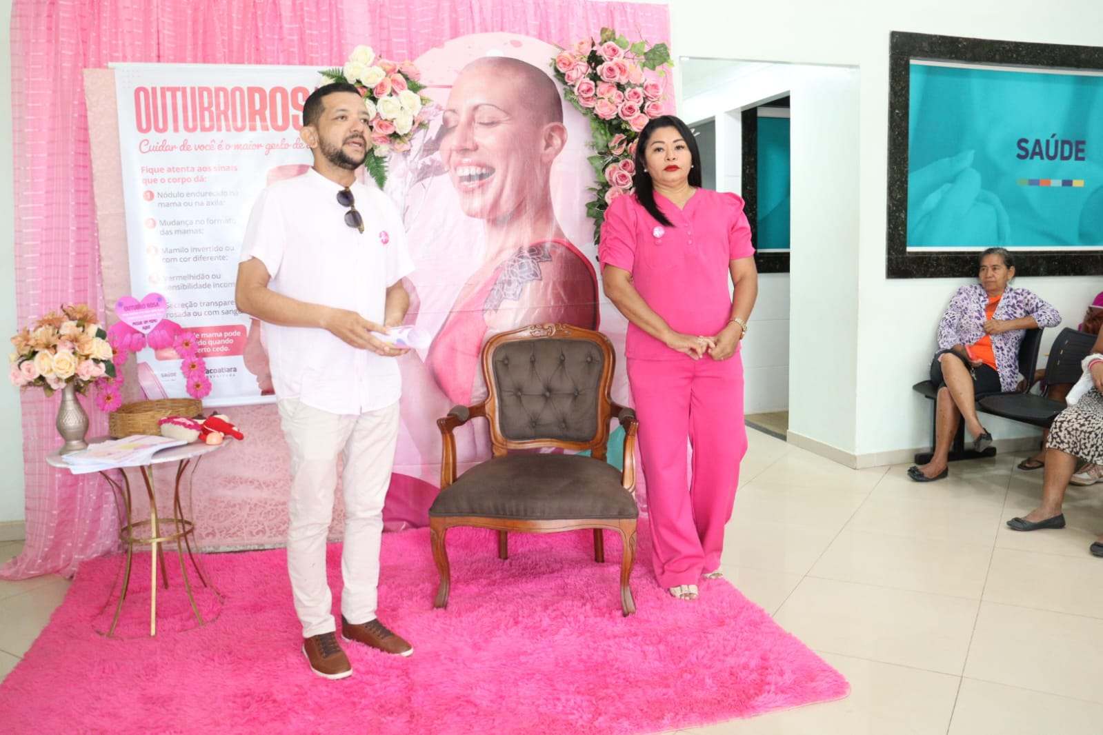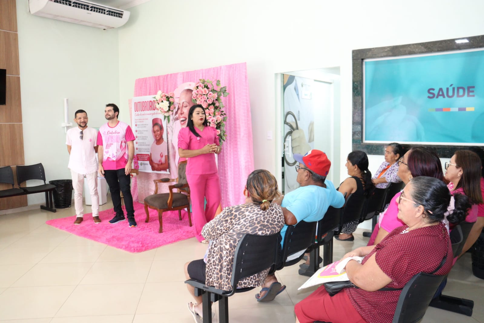 Na ação, foram oferecidos diversos serviços de saúde. Houve palestra com a coordenadora da saúde da mulher, enfermeira Nirlene Smith, e com o mastologista, Dr. Kaiom Pacheco, abordando cuidados, prevenção e a importância do diagnóstico precoce. Além disso, foram realizados atendimentos de mastologia e ginecologia, totalizando 80 mulheres atendidas ao longo do dia.